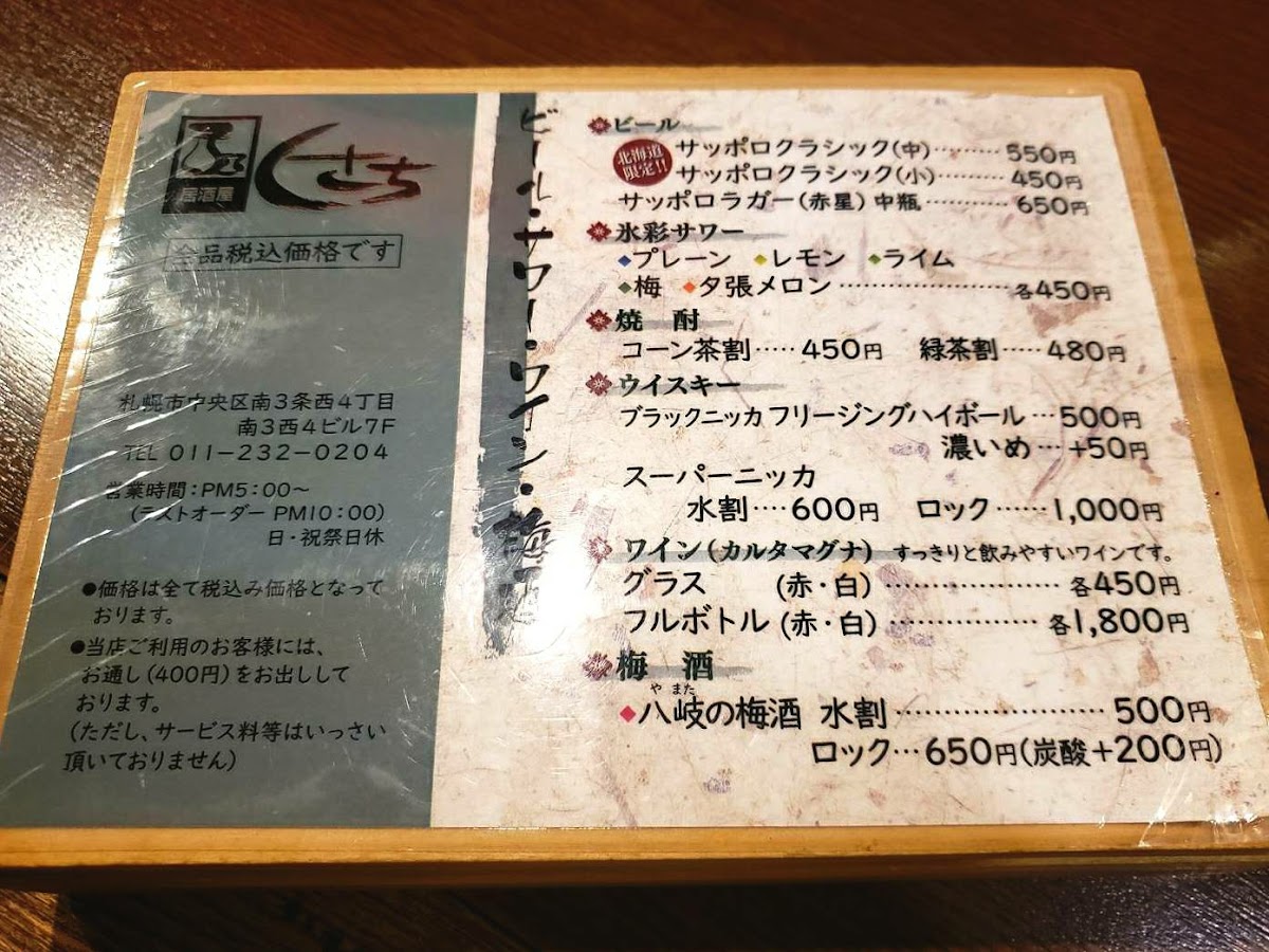 To round off the experience, the サッポロクラシック beer is a refreshing beverage that perfectly complements the rich and diverse flavors on offer. Whether you’re a fan of fresh seafood, savory grilled meats, or indulgent sake, Kusachi Susukino Honten’s menu offers a delightful variety of options that will leave you wanting to return for more.
