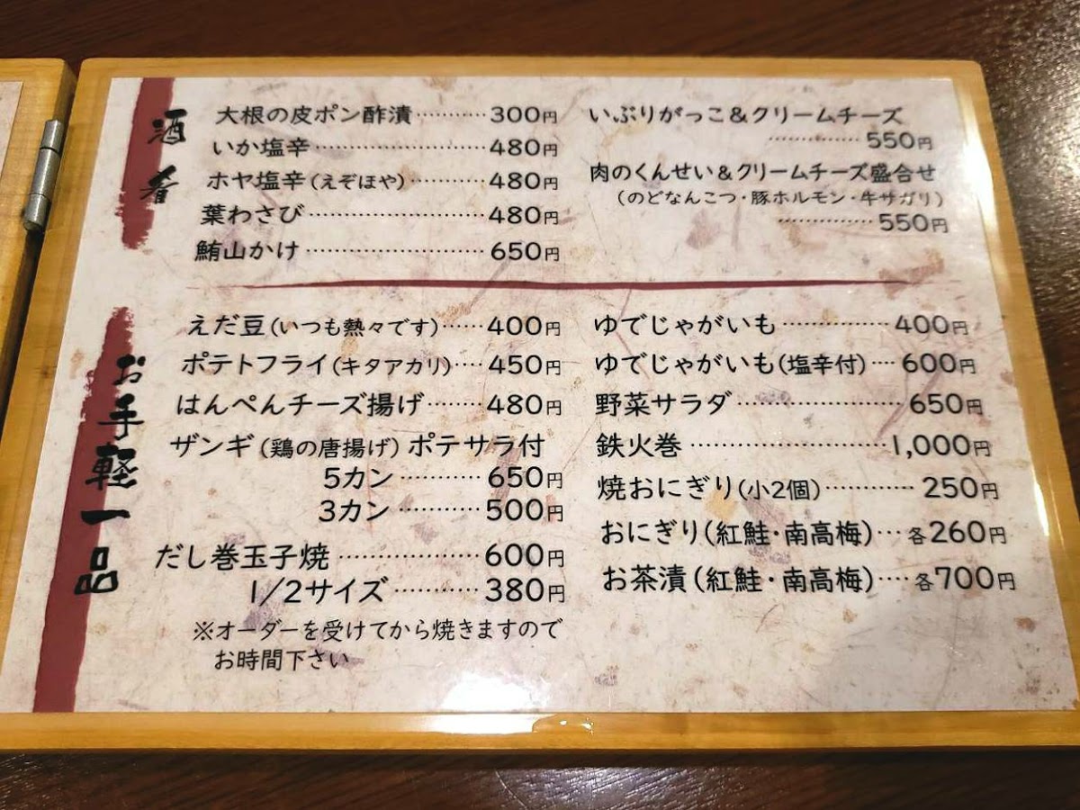 The だし巻き卵 is an omelet that encapsulates the essence of Japanese breakfast comfort, while the サッポロクラフトビール is a refreshing craft beer, perfect for pairing with any of the dishes. The restaurant also features a selection of sides like じゃがいも (potatoes), which add a simple yet satisfying accompaniment to any meal.